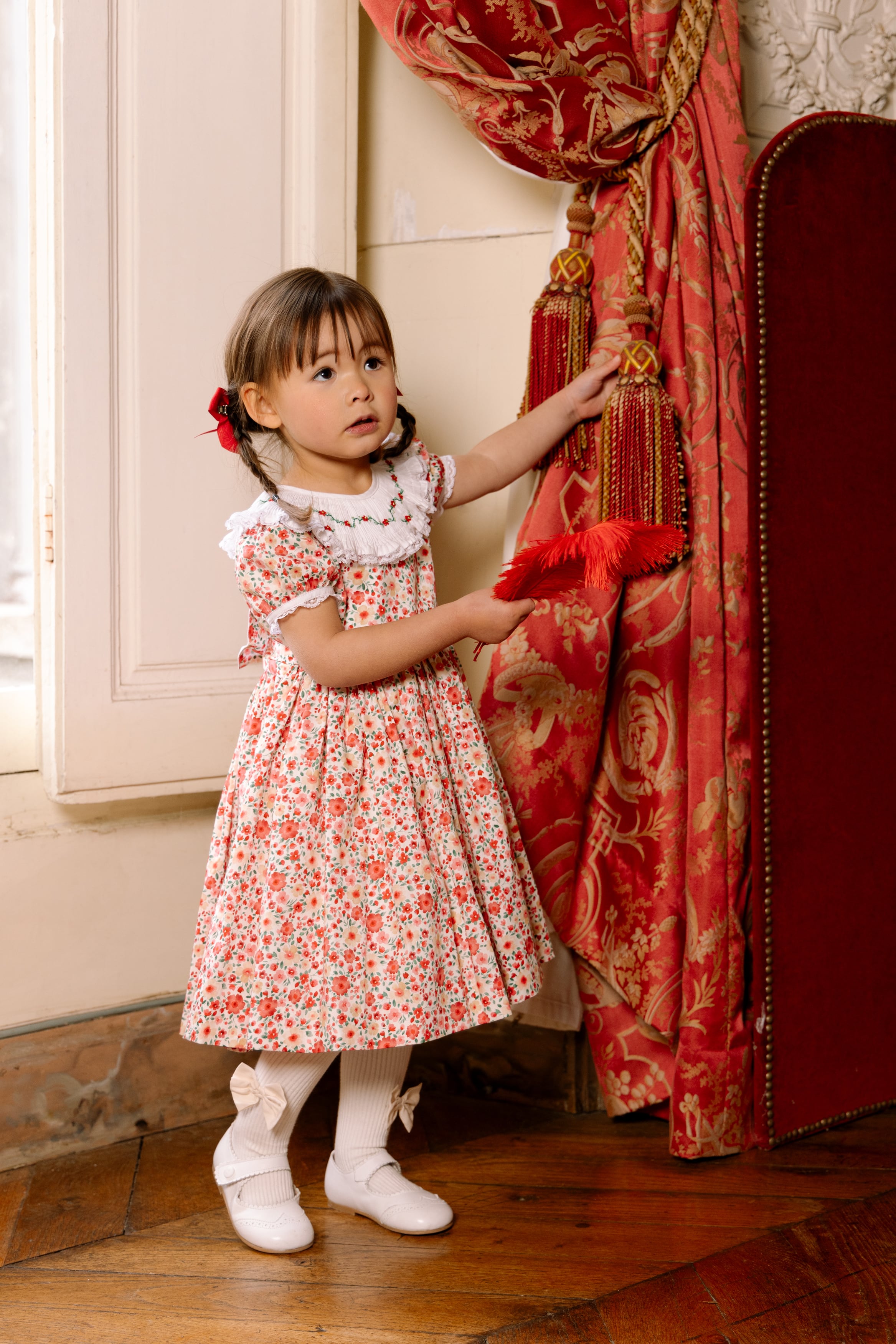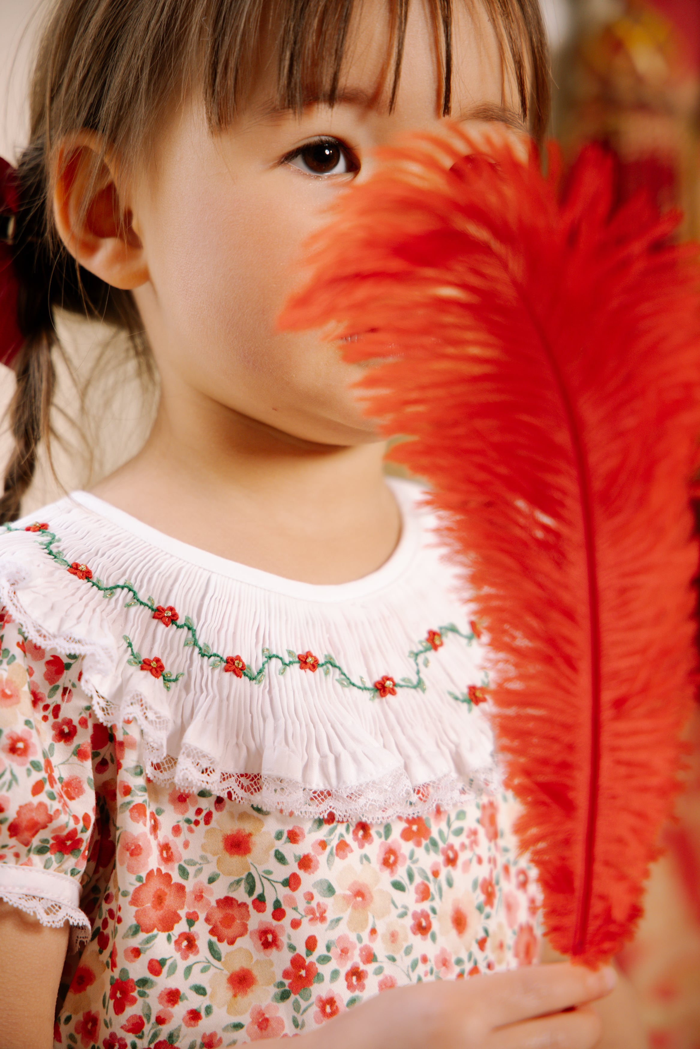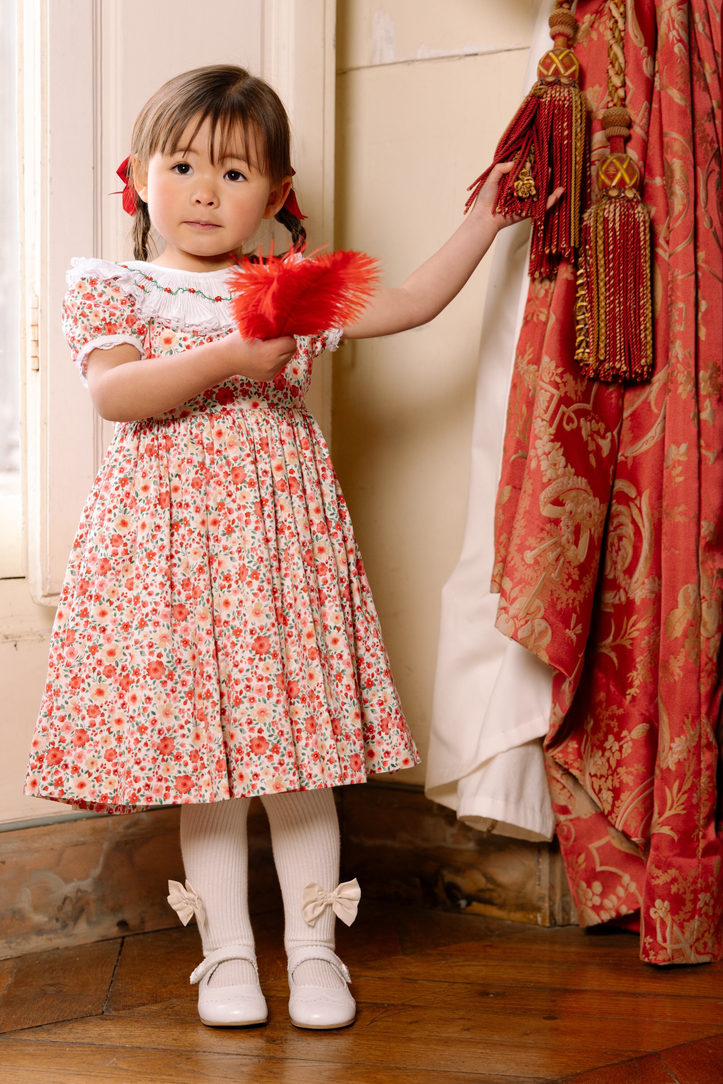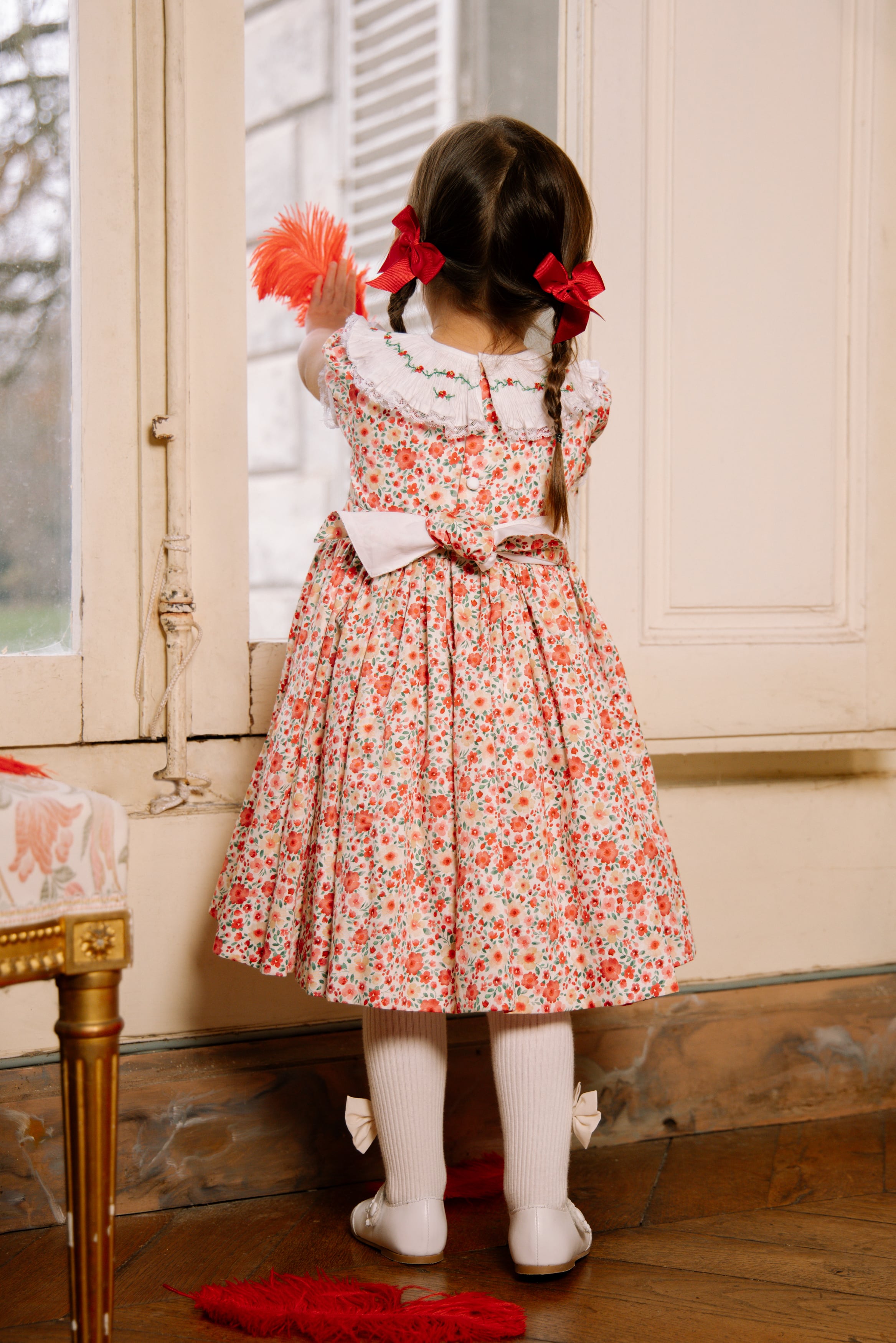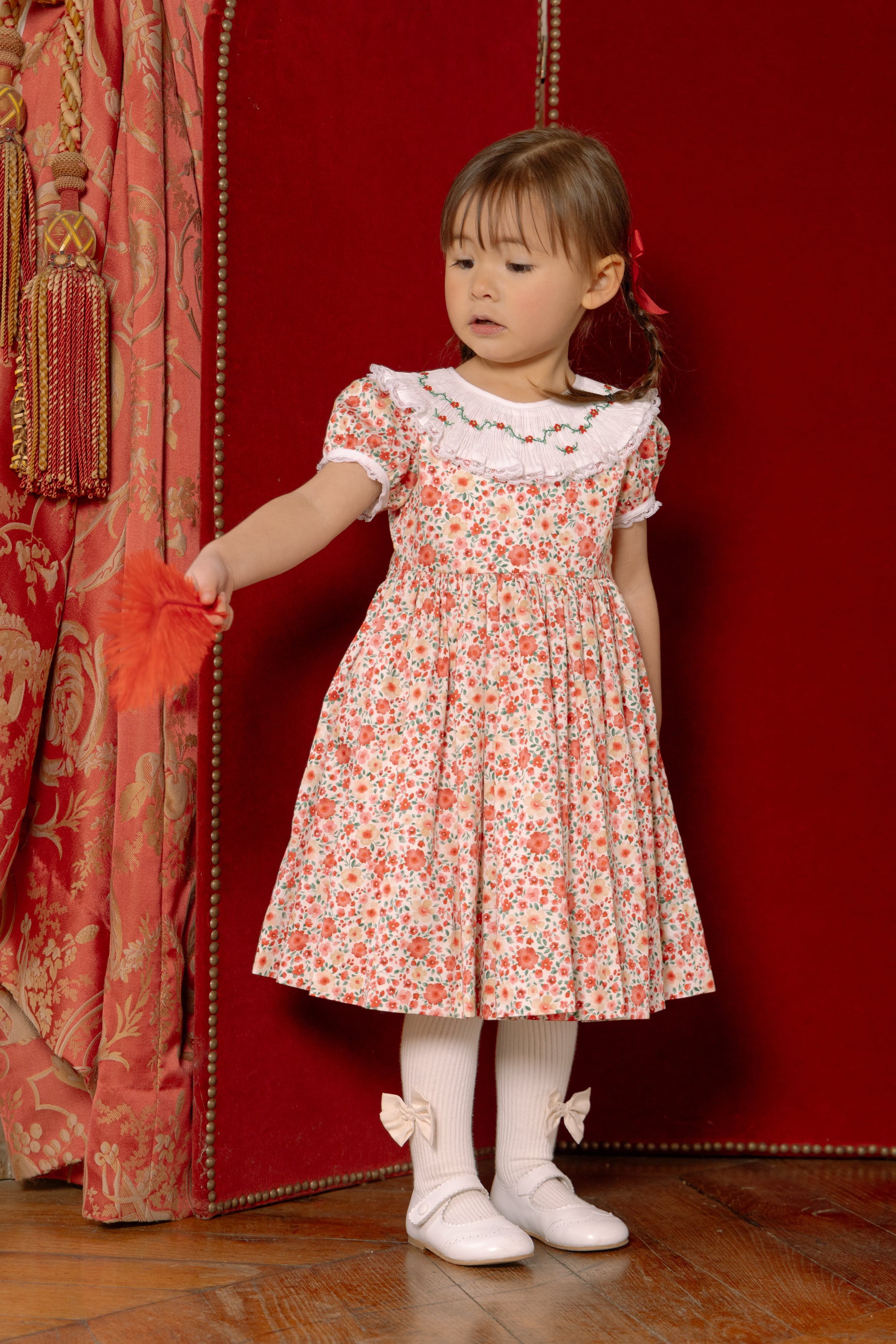 フレンチプリントの美しいデザイン、スモッキング刺繍は繊細に丁寧に思いを込めて