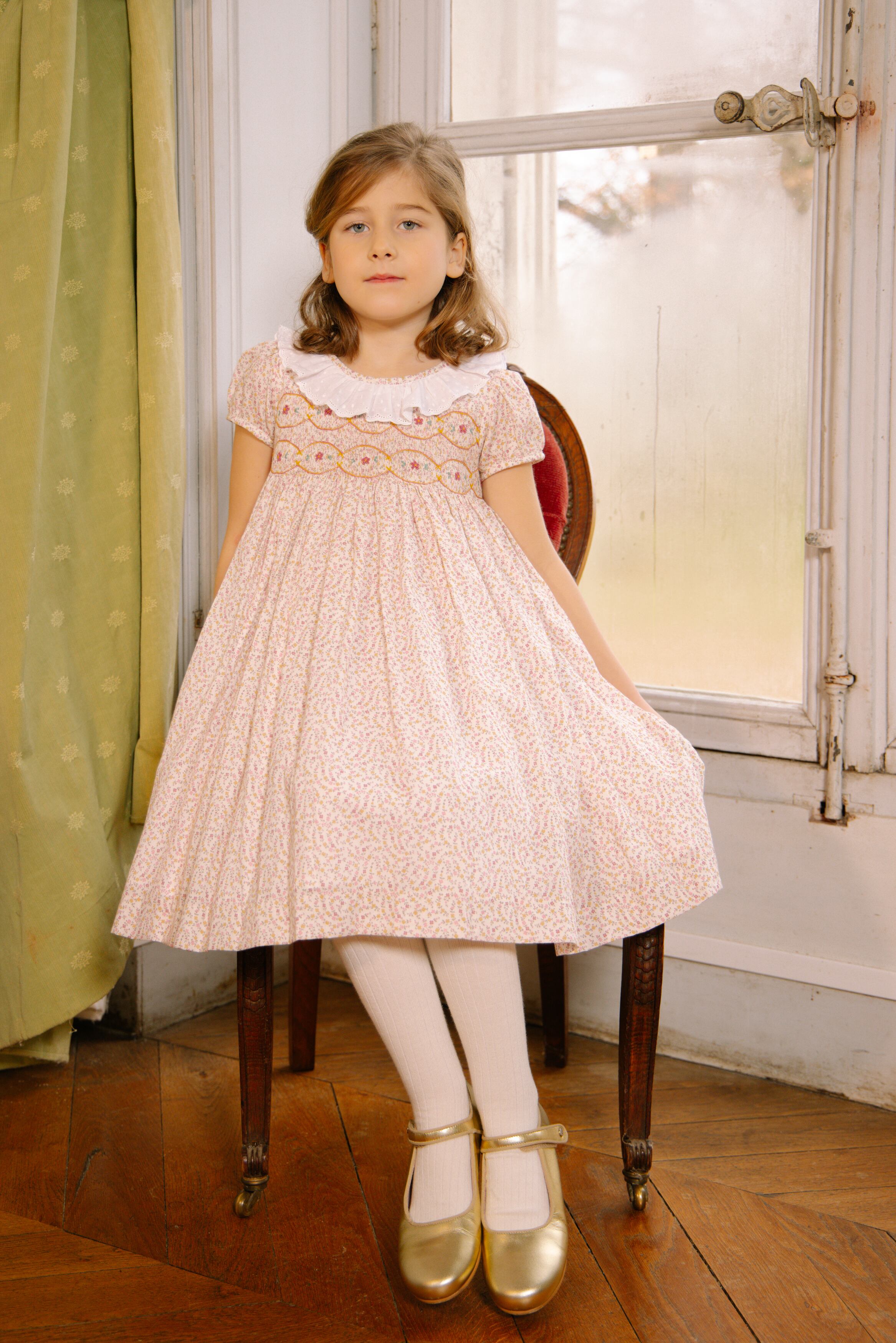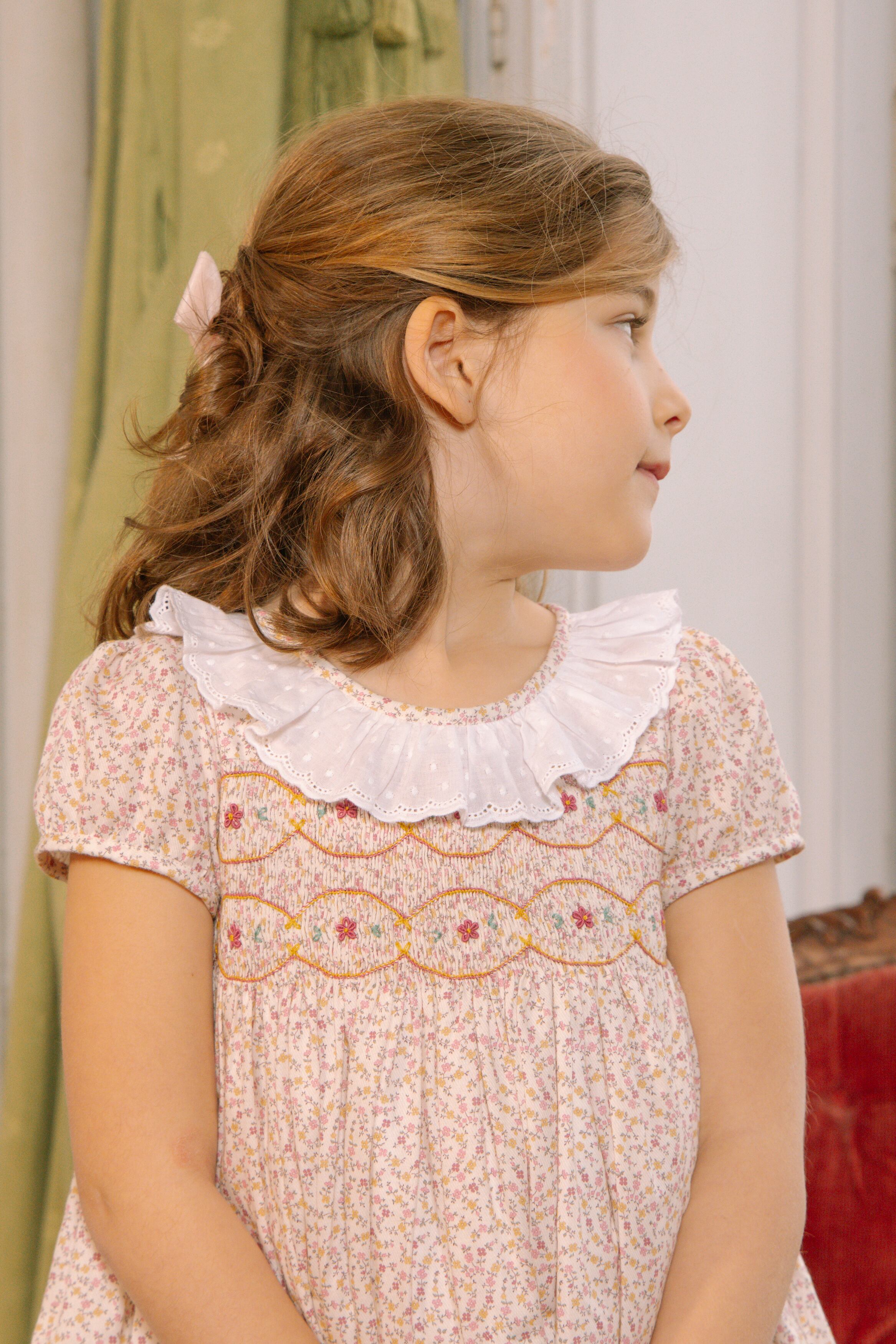 フレンチプリントの美しいデザイン、スモッキング刺繍は繊細に丁寧に思いを込めて
