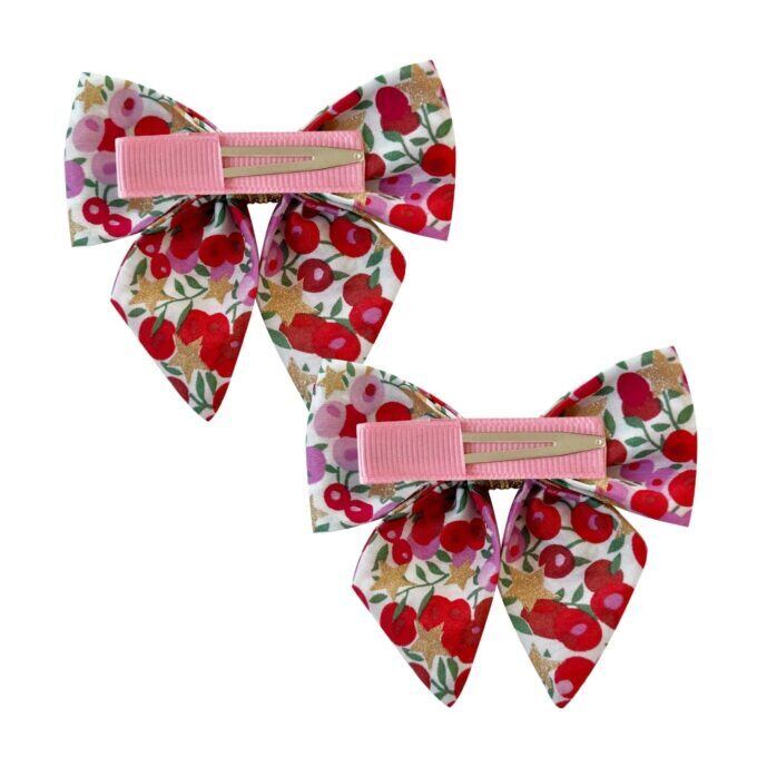 【Milledeux】 2個セット✨リバティ生地LOISE Liberty bowtie w. gold glitter middle and tails – set with 2 hair clips – Liberty Wiltshire Stars A