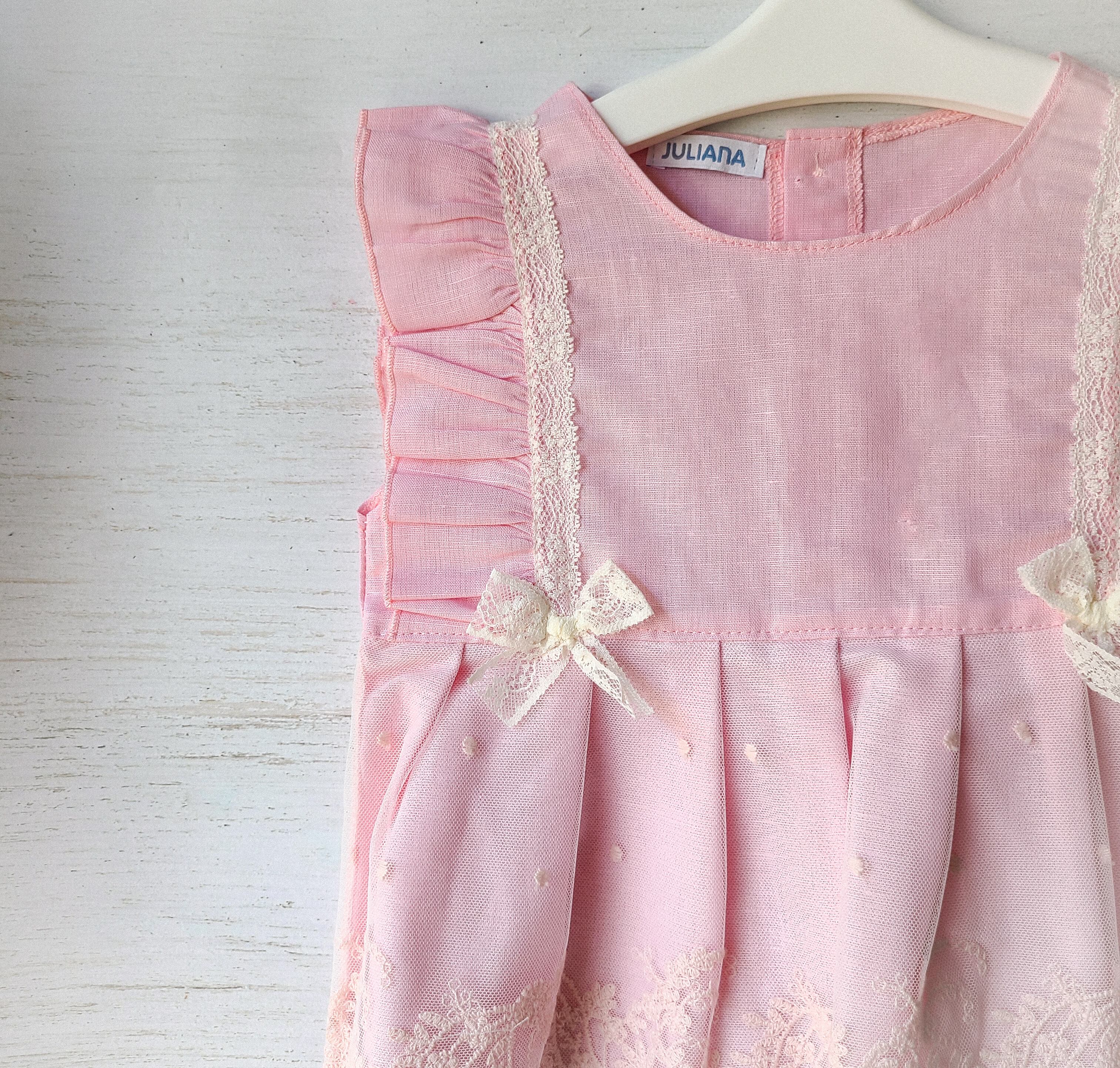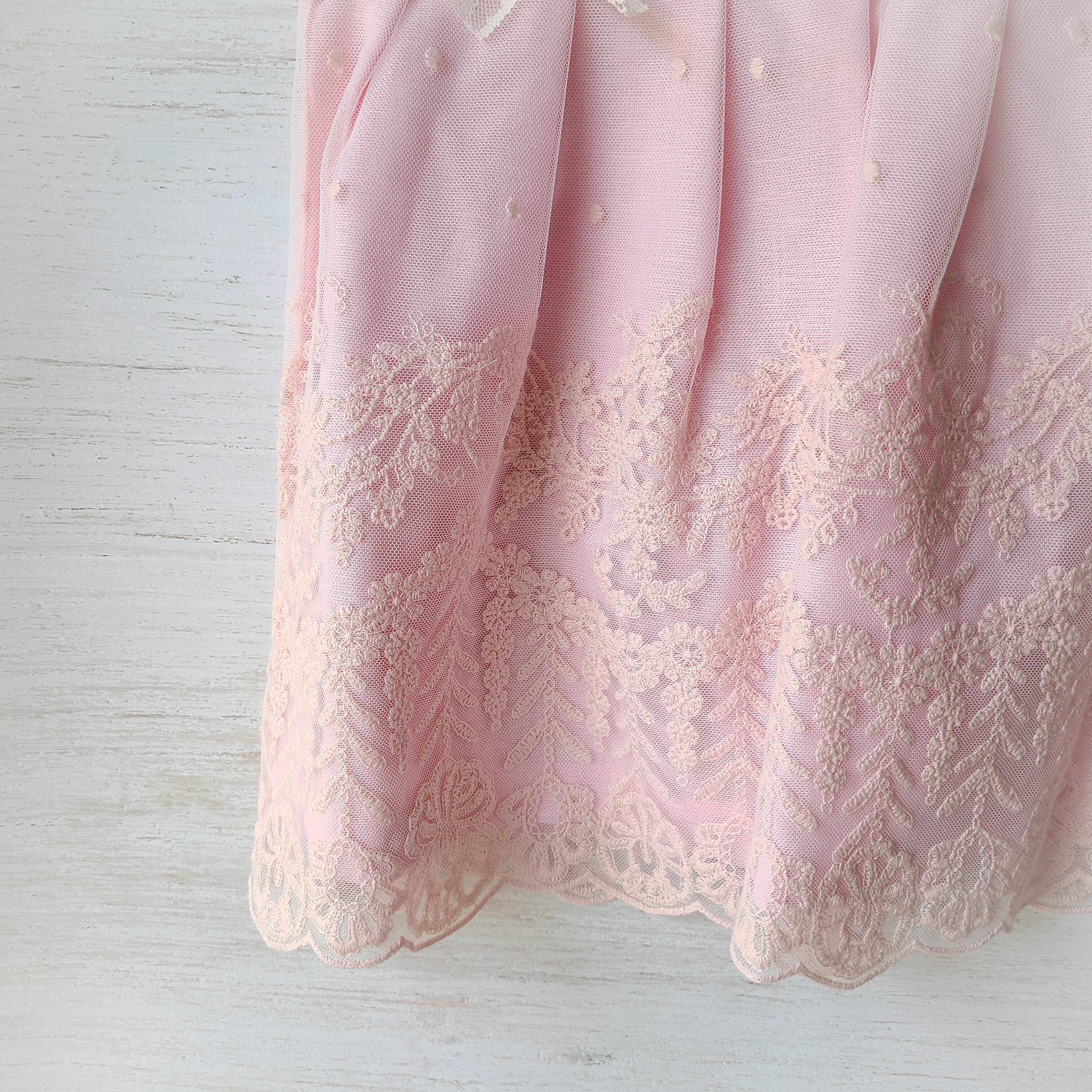 こちらは4y(48m)サイズまでのお作りです。ベビーらしい可愛くそしてエレガントさもあるすてきなデザインです