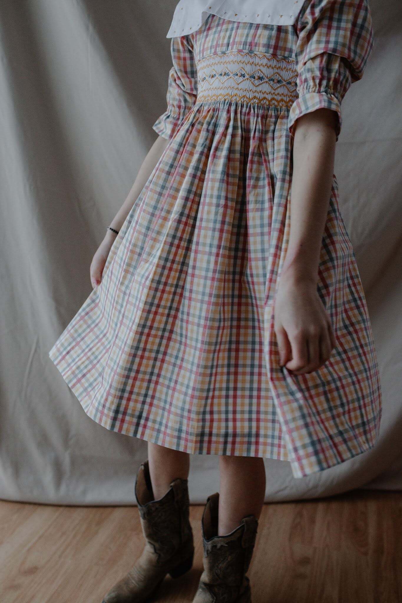 【Pomme cannelle 】The hand smocked VICTORIA dress - checkered yellow